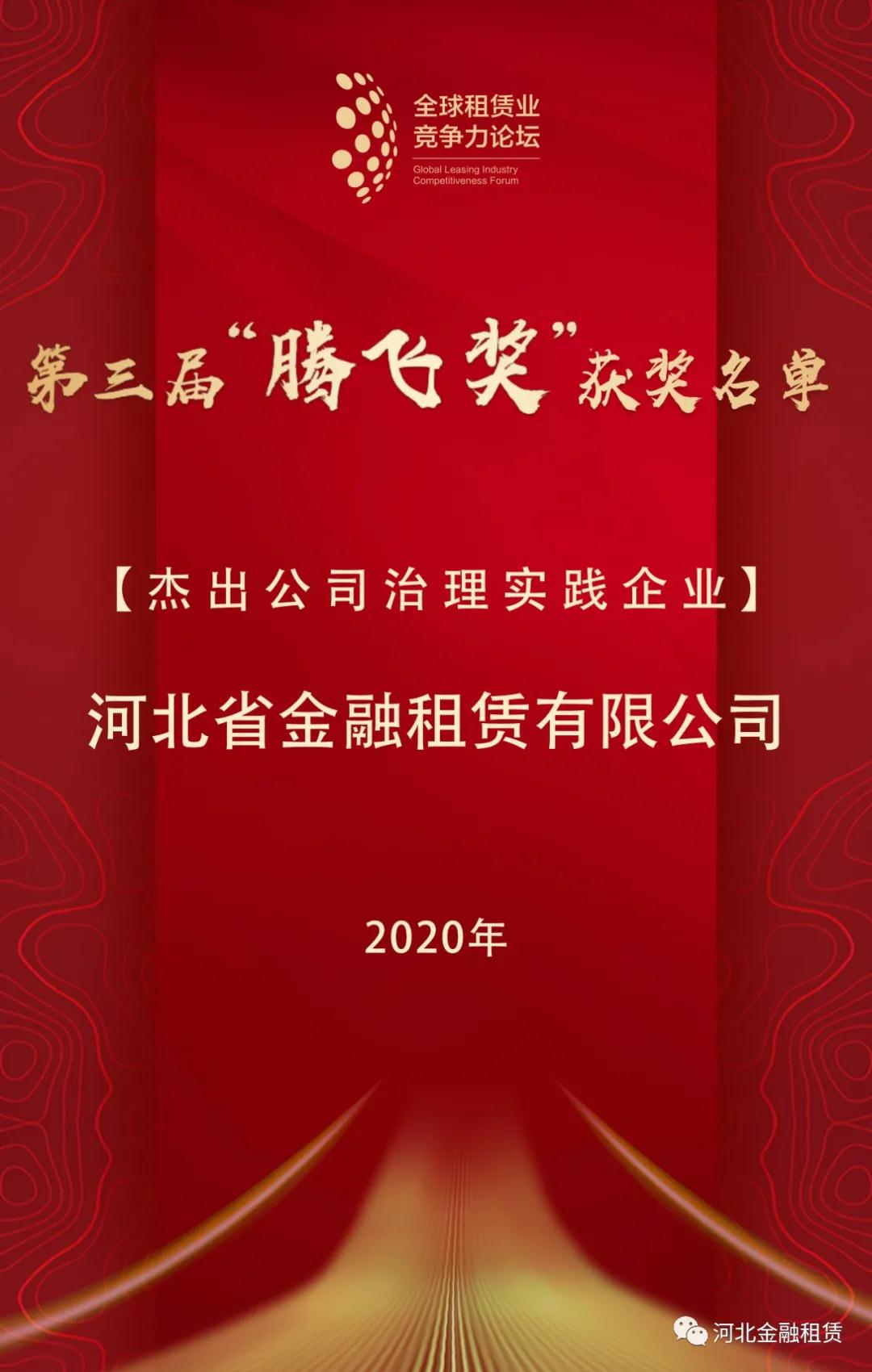 全球租賃業(yè)競爭力論壇峰會11月4日至5日在天津舉行,近千位國內(nèi)外融資租賃行業(yè)嘉賓齊聚一堂,匯智論道,“聚焦雙循環(huán),謀新十四五”。本次峰會同時頒發(fā)第三屆中國融資租賃“騰飛獎”,河北省金融租賃有限公司榮獲中國融資租賃“杰出公司治理實(shí)踐企業(yè)”榮譽(yù)。