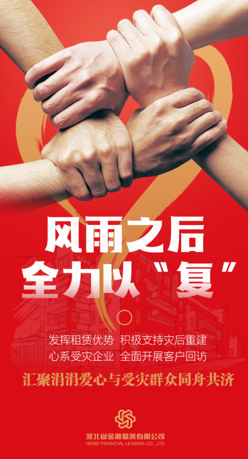 風(fēng)雨之后,是災(zāi)后重建的關(guān)鍵時期。河北省金融租賃有限公司(以下簡稱“河北金租”或“公司”)全力落實(shí)各級政府及監(jiān)管部門的決策部署,及時出臺針對性政策,迅速投身災(zāi)后重建工作,積極幫助受災(zāi)地區(qū)企業(yè)解難紓困,以實(shí)際行動踐行金融工作的…